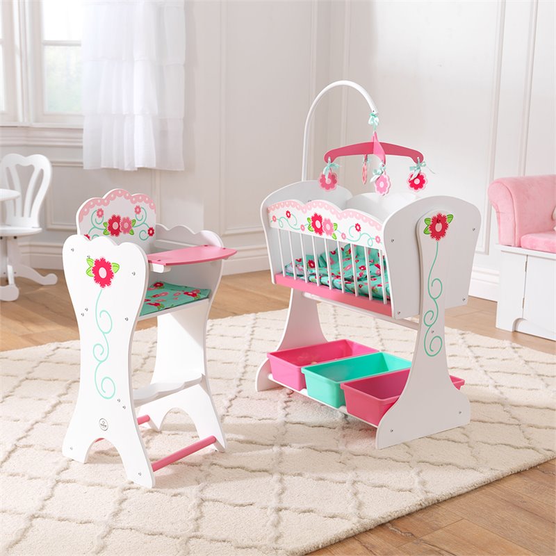 Kidkraft Wooden Floral Fantasy Doll Furniture Set Cradle High
