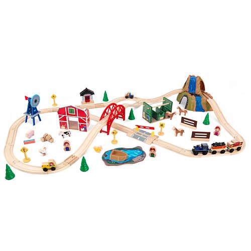 Kidkraft Railway Express Kid Toddler Wooden 79 Piece Toy Train