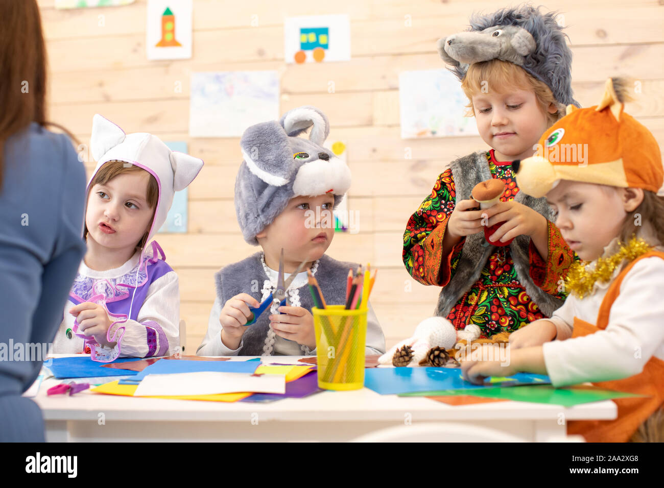 Kids Group Making Arts And Crafts In Kindergarten Stock Photo
