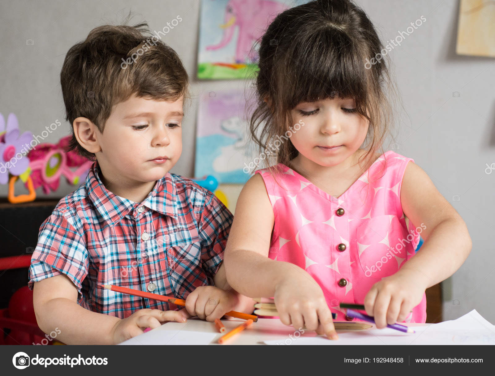 Happy Kids Doing Arts Crafts Day Care Centre Group Cute Stock
