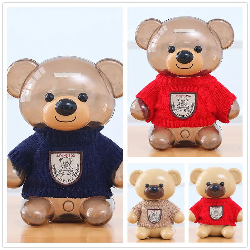 Cartoon Plastic Sweater Bear Girl Piggy Bank Mini Money Box Coins