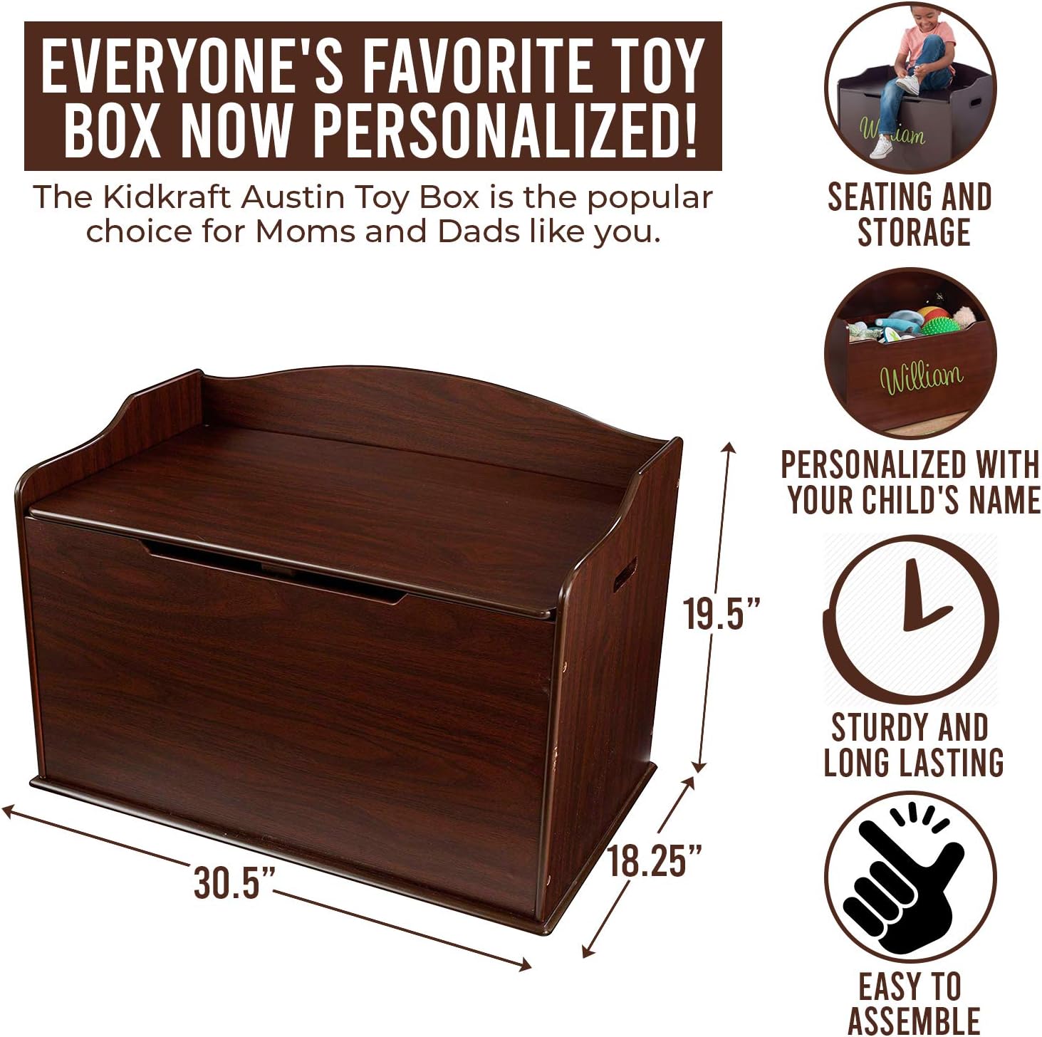 Kidkraft personalized austin toy box espresso wooden storage bench with lid for kid and toddler room playroom organizer for girls and boys. Kidkrafts new austin toy boxes are adorable and serve as convenient storage and seating. With its classic handsome design this toy box can double as a bench and provides a useful addition to any playroom.