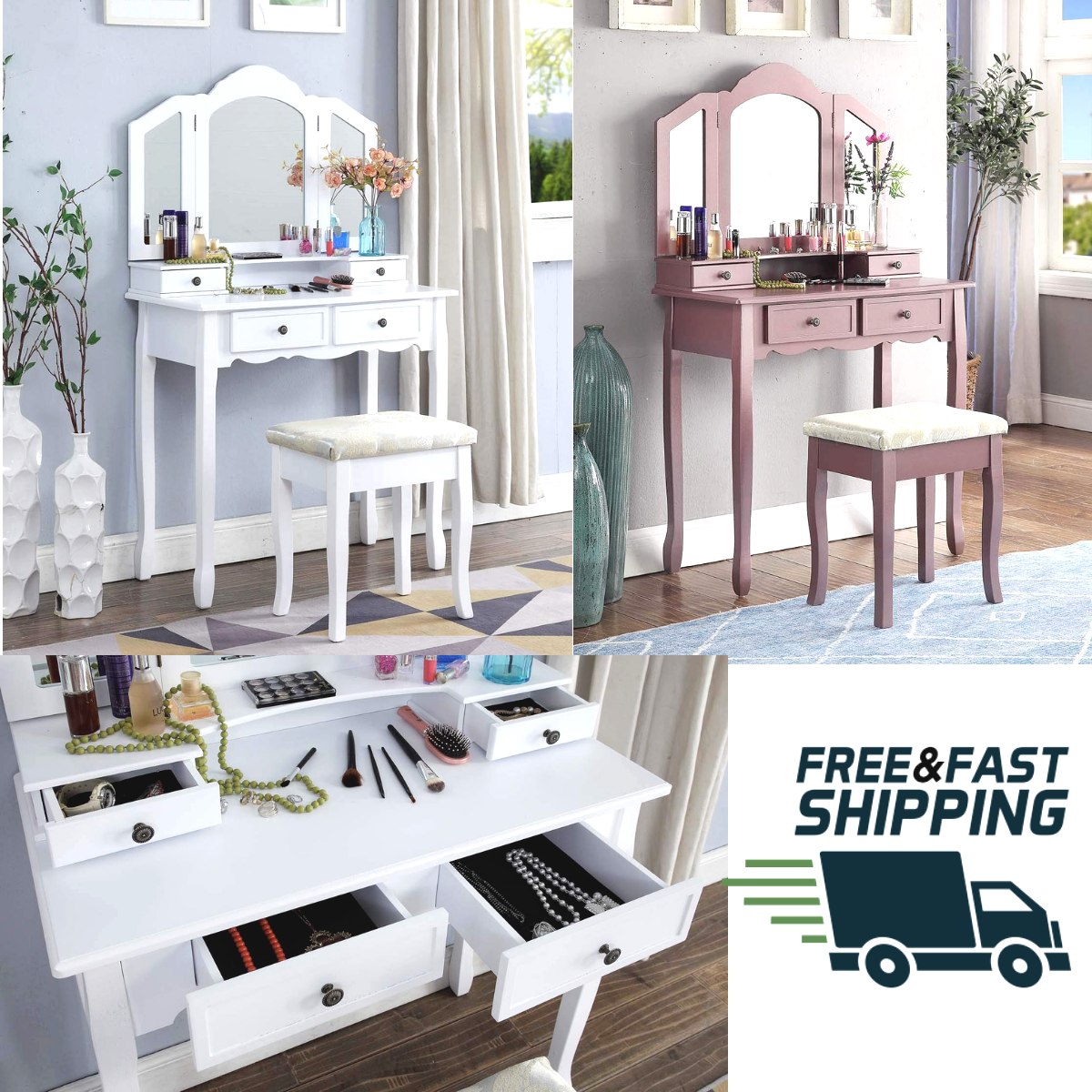 Every young lady needs a vanity and you cant do better than this girls kidkraft deluxe set. The kidkraft deluxe 2 piece vanity set with mirror is a wonderful addition to your little princesss room. Giantex vanity table set with mirror and stool for bedroom modern wood style cushioned bench oval mirrored multifunctional top removable writing desk dressing tables for girls.