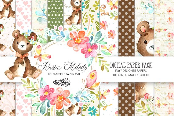 Digital Paperbear Paper Pack Baby Shower Diy Decoration Etsy