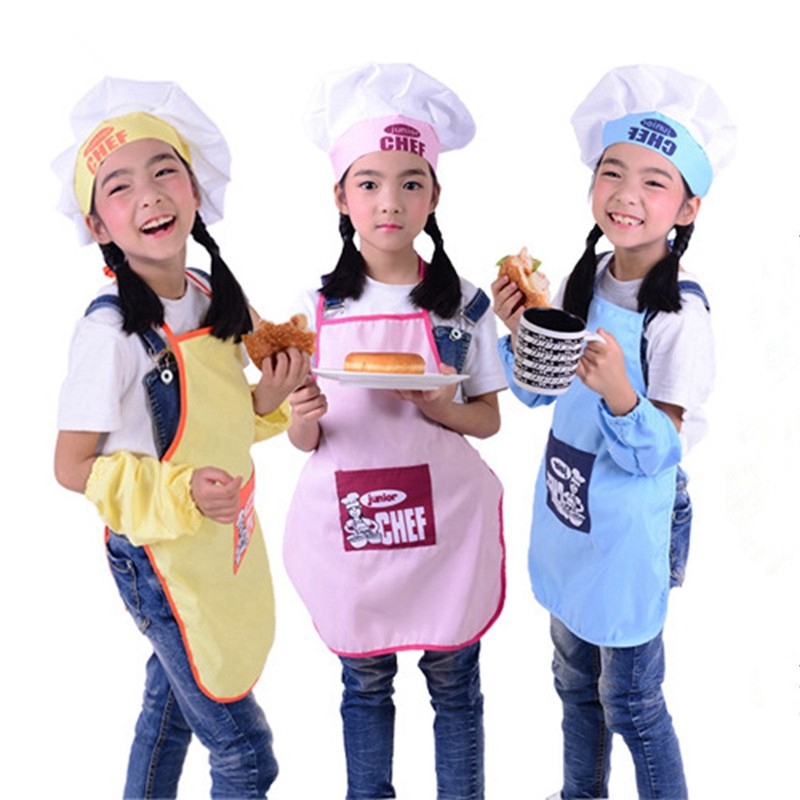 Kids Cooking Costumes Children Apron Chef Hat Cuffs Set Baby