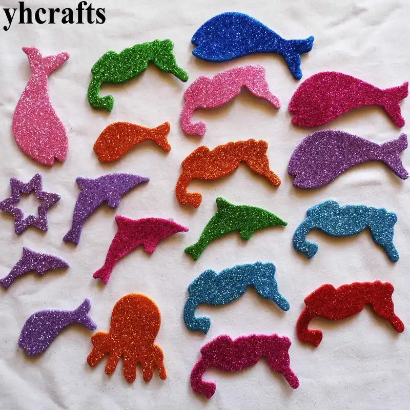 1bag Lot Ocean Animal Glitter Foam Stickers Color Learning Early