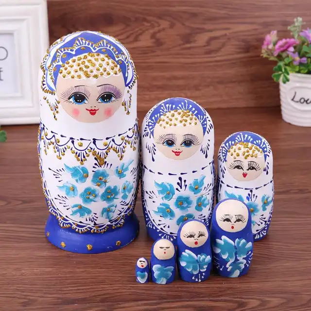Les 10pcs Wooden Russian Matryoshka Dolls Diy Handmade Art Craft