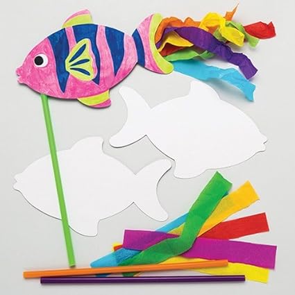 Baker Ross Fish Wand Kits Pack Of 6 For Kids To Make Decorate