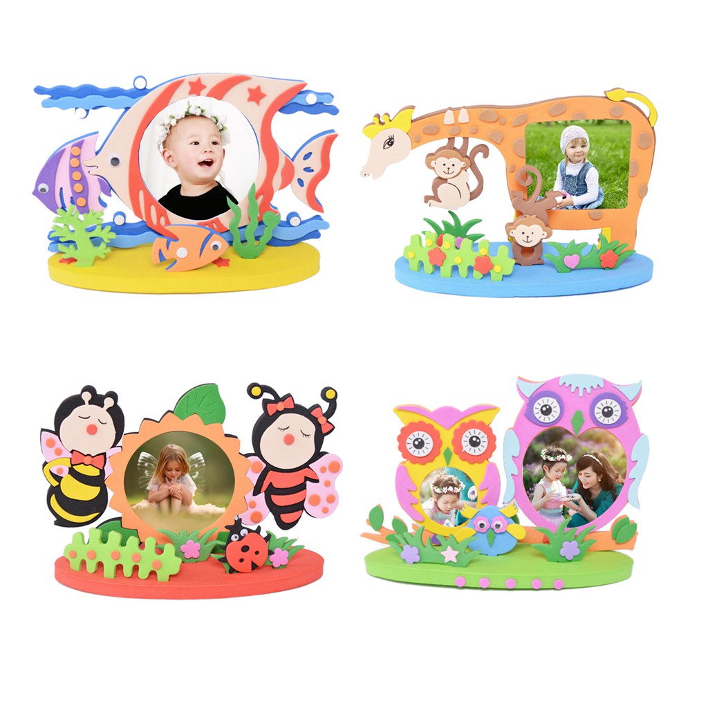 Diy Bee Owl Giraffe Fish Photo Frame Foam Craft Kits Educational