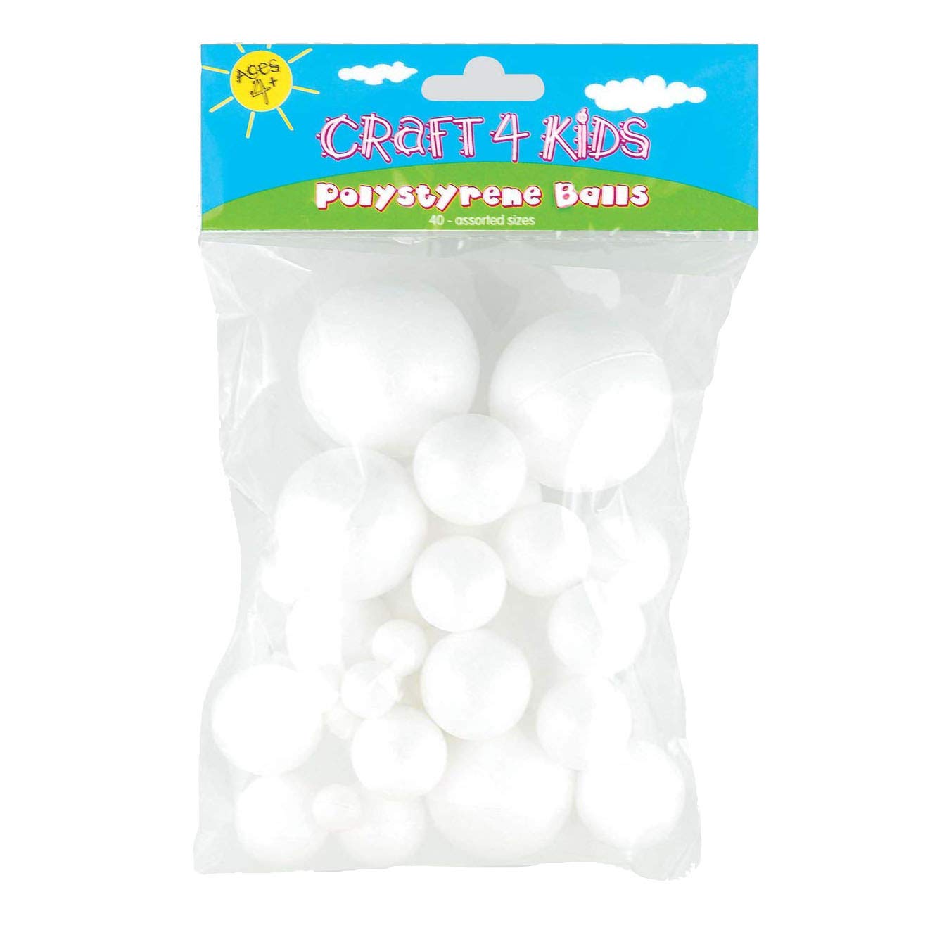 Craft 4 Kids Polystyrene Balls Pack Of 32 Assorted Sizes Art