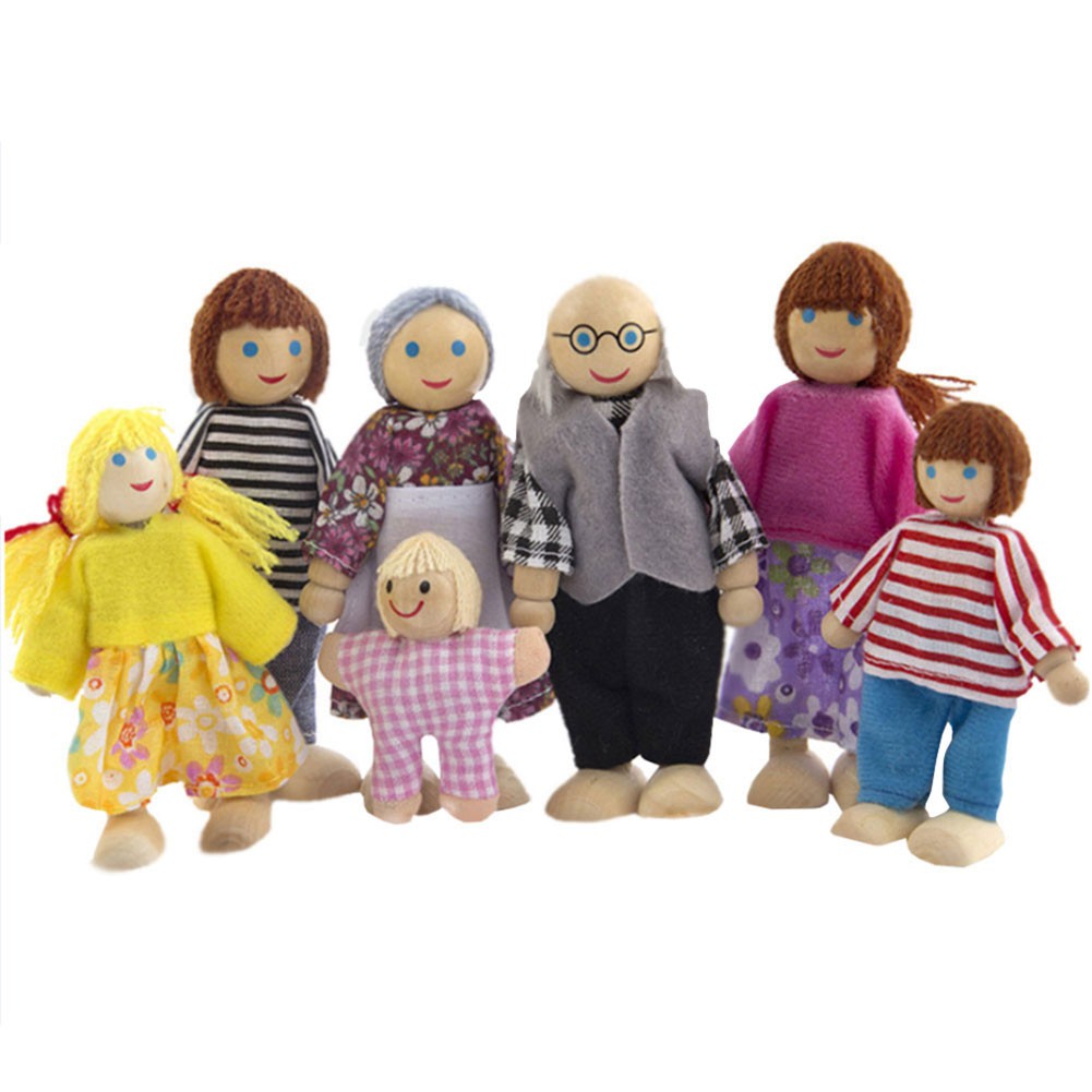 Kids Girls Wooden Happy Doll Toys Of 7 People Happy Doll Family