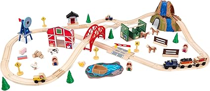 Amazon Com Kidkraft Wooden Rural Farm Train Set With 75piece