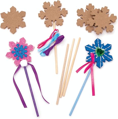 Amazon Com Baker Ross Snowflake Wooden Magic Wands Arts And
